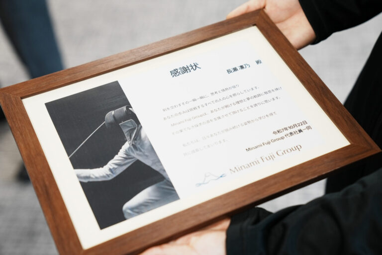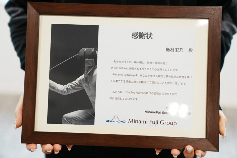 In particular, to support the next generation of talent, we have decided to sponsor Ayano Iimura (Keio University) and Rinno Nagase (Japan Women’s College of Physical Education), and a presentation ceremony was held the other day.